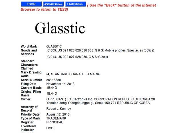 Le constructeur coréen a en effet déposé auprès de l’USPTO (le bureau des brevets et des marques américain) le 14 novembre dernier la marque Glasstic, qui irait bien, en effet, à des lunettes connectées. Il est enregistré dans les catégories « téléphones mobiles » et « théâtre optique », ce qui semble vouloir tout dire ou presque.